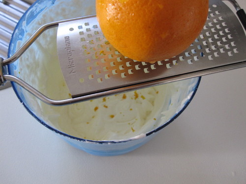 2 Bata as natas. Junte o açúcar a gosto e a raspa de laranja a gosto também.