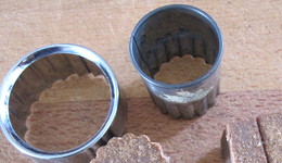 3 Com um cortador alto a seu gosto, corte o bolo de chocolate ainda quase congelado.