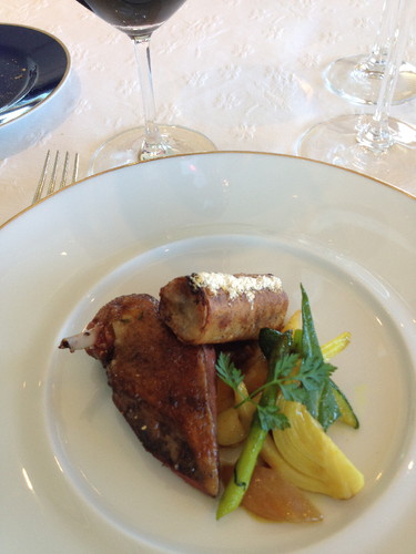Na carne, um dos meus favoritos desta carta: peito de Pombo de Anjou assado, refogado de legumes com amêndoas e tâmaras, coxas em pastilla com sultanas. Uma interpretação marroquina do Pombo muito bem conseguida e equilibrada. Heston Blumenthal faz uma receita semelhante a esta, mas com cereja, pistácio e cacau, embora no Fat Duck eu só tenha provado a ballotine. Estes pombos da região de Anjou não costumam ter mais de 28 dias quando entram na cozinha para este tipo de confecções.