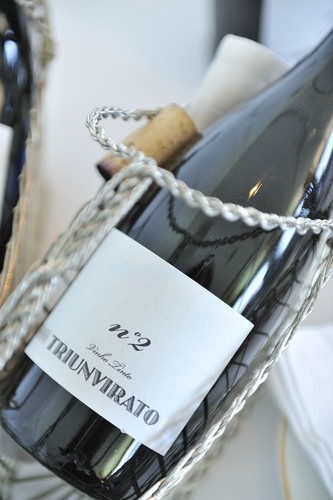 [Triunvirato nº 2 é nome do tinto que acompanhou o pombo. É originário de um casa fundada em 1920, cujo produtor conta com a colaboração de um dos mais jovens e promissores enólogos portugueses para elaborar os vinhos das suas três propriedades. Este vinho foi criado loteando vinhos de 3 regiões diferentes, baseado nas castas Touriga Nacional do Douro (Quinta do Cachão), da