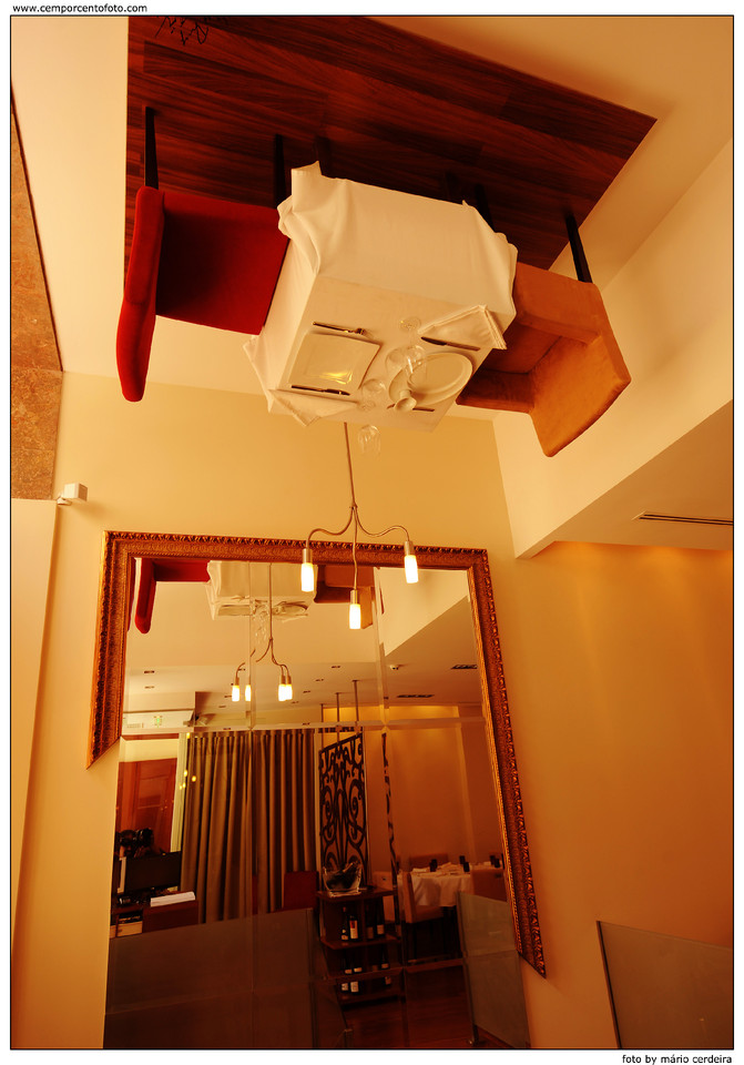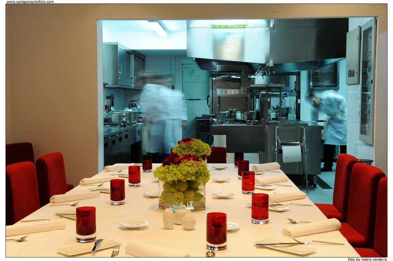 Na véspera de São Pedro comemorou o restaurante Assinatura, do Henrique Mouro, dois aninhos de vida, e que Deus o conserve. O espaço é muito agradável e está-se muito bem sentado nas confortabilíssimas cadeiras bem proporcionadas com as mesas. Gosto imenso do painel que cobre a parede do fundo de ponta a ponta (foto do Mário Cerdeira) e, claro, da mesa do chef onde se pode ver toda a acção da cozinha.