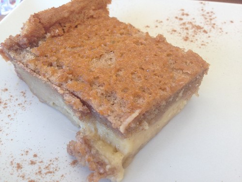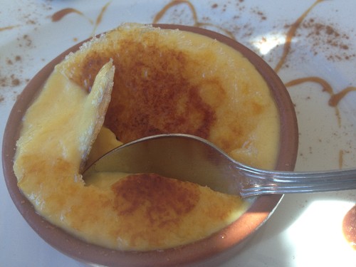 De sobremesas provei a famosa tigelada da casa, que já foi motivo de prémio em concurso regional. É feita em forma rectangular em forno de lenha e cortada em fatias da mesma forma. Apesar de estar prediposta para gostar, não adorei. Tem duas texturas diferentes, uma mais “abolada”, e sabor demasiado alimonado. Pedi também um leite creme, que tinha boa textura e vinha muito bem queimado.