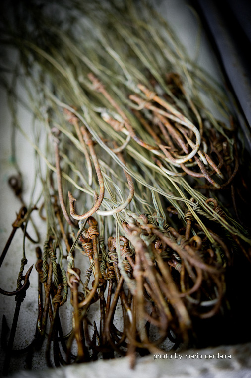 Neste alguidar está pronto o palangre de anzol pequeno para ser lançado do barco.