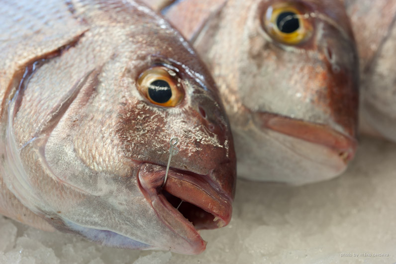 Gostava que dessem atenção a estas duas pescadas. São completamente diferentes. A da esquerda está baça e de olho mortiço. A da direita está brilhante, com reflexos irisados que traduzem a presença integral das escamas e um curto tempo entre a sua saída do mar e a venda na lota. A verdadeira diferença entre as duas? A arte de pesca com a qual foram capturadas: a primeira provém do arrasto, a segundo do anzol. A qualidade do peixe está indiscutivelmente ligada às artes de pesca, um tema que muitas vezes não está presente nas preocupações do consumidor, nem do cozinheiro, como critério de escolha do peixe.