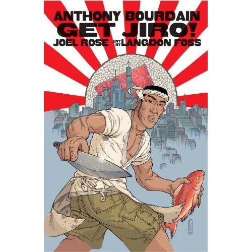 O popularíssimo Anthony Bourdain lançou este Verão um romance gráfico chamado Get Jiro. Passa-se numa Los Angeles do futuro e os chefs são os super heróis da história. Mais precisamente os sushiman japoneses que, armados com as suas maiores facas, combatem monstros marinhos.