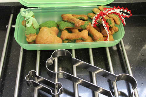 Nada mais fácil do que fazer uns saudáveis biscoitos para mimar o seu cão, ou os cães dos amigos (salvo seja) no Natal. Levam apenas farinha de soja e de trigo, água e um pouco de mel e de óleo. São muito mais baratos que os de compra e muitos fáceis e divertidos de fazer, embora não deva esperar uma grande ajuda do seu cão...