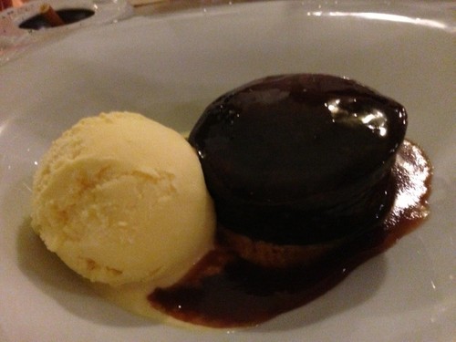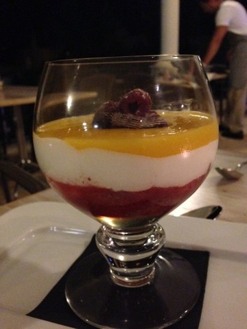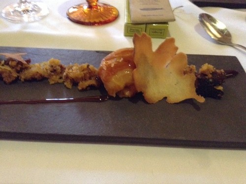 Migas do toucinho de céu com gelado de abade de Priscos. Apesar dos títulos, a sobremesa sai leve sem perder no sabor, no fundo, aquilo que se pretende na tal modernização. A apresentação é linda. O pudim fica óptimo em gelado.