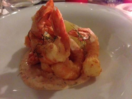 Iogurte de pedaços de carabineiro, tártaro de carabineiro com ostra da ria Formosa. Sabores fortes marítima do costa minhota, e não só, em texturas interessantes.