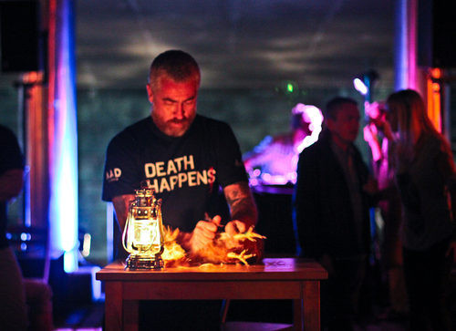 Marginalizando franceses e espanhóis (estranhamente esteve presente Alain Ducasse, a fazer a ponte), o MAD acolhe no seu seio escandinavo alguns cozinheiros estado-unidenses e o brasileiro Alex Atala, que além de superlativo cozinheiro e magnífico actor, sempre à vontade em qualquer papel, é o curador do festival do próximo ano. Atala está aqui com a sua dama, a Amazónia que, contrariamente ao que se pensa na Europa, há muito que não é natureza pura, mas devido à presença dos vários povos índios, “um modelo cultural consciente”. A imagem de marca de Atala no festival é uma giantesca foto em que dá o dedo. Não se sabe a quem. Presumo que não seja aos clientes dos seus restaurantes, mas sim às Monsantos deste mundo. Ou talvez apenas esteja no seu código genético.