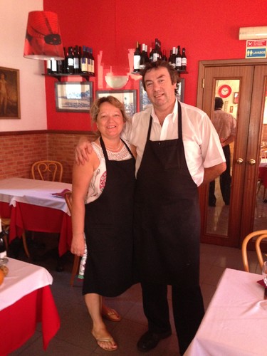 Sardinha e cavala em duas confecções sobre gaspacho de pimentos foi a entrada que provei e gostei muito, tanto do ponto de vista estético da combinacao das cores como da harmonia dos ingredientes locais. Dois peixes da costa algarvia bem casados com tomate e pimento que antigamente os camponeses do Barrocal cultivavam nas hortas à beira-mar (vide Praia dos Tomates, em Vilamoura).