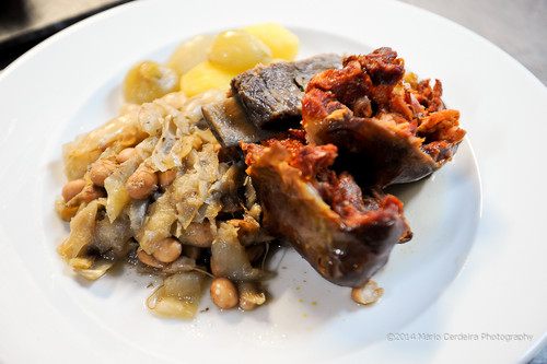 Butelo e casulas cozinhados pela Justa Nobre, no restaurante Spazio Nobre. A Justa faz este prato por encomenda...