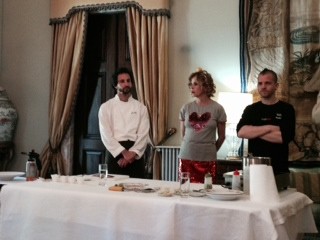 O pretexto para reunir os meios de comunicação foi um pequeno showcooking de Muñoz e do nosso Avillez, um homenageando o país do outro. O português fez um gaspacho de cereja com cavala marinada e fumada e, como sempre, falou muito bem, afirmando que cada vez mais a sua cozinha caminha para uma simplicidade aparente, com muita técnica nos bastidores. Em conversa que tive com ele, perguntei-lhe o que podíamos aprender com os espanhóis. A resposta foi consistência. Quando o cliente vai comer a um restaurante tem de ter a garantia do melhor, esteja ou não o chef na cozinha. É sempre um orgulho vê-lo em público. O espanhol cozinhou um prato de bacalhau (samos).