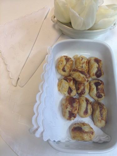 Hoje o tempo obrigou-me a trabalhar de bom grado. Veio mesmo a calhar esta ventania, para terminar uma série de coisas que tinham mesmo de estar prontas até Domingo à noite. Há pouco levantei-me da escrita para ir fazer estas duas versões, uma doce, outra salgada, de massa podre. Foi uma amiga minha do Recife, a Ana Regina, que me deu a receita desta massa que serve de base a empadas. É uma massa friável, que se desfaz nas nossas mãos e se desagrega na boca, deixando-nos sentir o sabor da manteiga e do queijo. Fazem-se num instante (meia hora de cabo a rabo) e são uma delícia. Os salgados são ideais para aperitivo, antes do jantar (ainda vai a tempo). Os doces podem ser feitos com marmelada ou goiabada. Quando os comemos sentimos a mistura do salgado e do doce, altamente reconfortante.