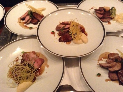 Do agradável jantar saliento um gel de gaspacho da entrada e o prato de porco preto alentejano (conforme lhe chama Joaquim Arnaut, o seu criador, uma vez que o nome porco de raça alentejana está reservado para os associados da ACPA, com sede em Ourique). Secretos e presa conviviam com um puré de aipo, apresentando-se esta última, para mim uma das melhores parte do porco, bem rosada.