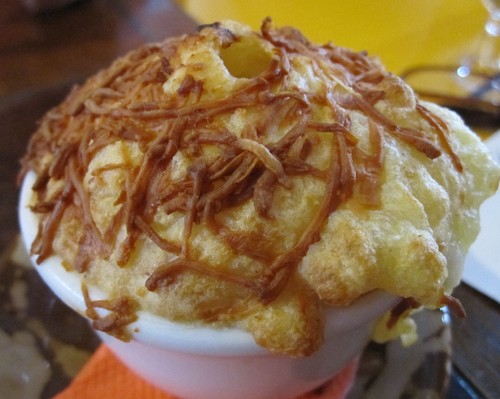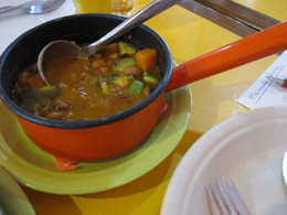 This is the type of food that gives you an intense desire, from your mouth and from your heart. Escorting the meat, a whole series of sides: yellow mini beans (in Northeast Brazil, there are over a hundred species of beans), slowly stewed with Legumes Caipiras (local vegetables), farofinha de flocos de milho (cornmeal flour or farofa), a true delight. Last but not least, the Escondidinho de Carne da Panela em Puré de Mandioca, is a sort of toad in the hole with stewed meat hiding in a ball of manioc purée. Comforting. All the menu names come in diminutive versions because the food is motherly and loving, not only for me, whose DNA contains theses tastes but also for my table fellows the Syrians, the Belgians, the German and the English, who eat with the same enthusiasm, the same desire, the same pleasure.