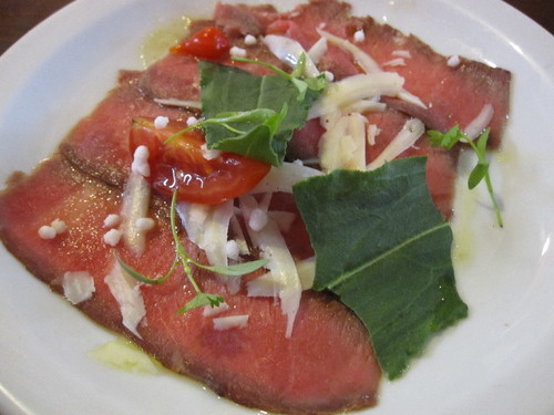 Sun cured meat in carpaccio.