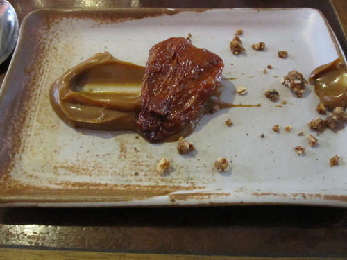For dessert, Caju Confit com Doce de Leite e Castanha Caramelada com Flor de Sal, a harmony of the very sweet cooked milk with the acidity of the whole cashew fruit and saltiness of the salt flower. Amazingly simple.