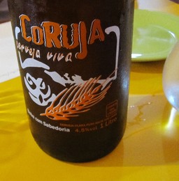 Cachaça Rapariga and beer Coruja, two of the cachaças and beers of the meal.