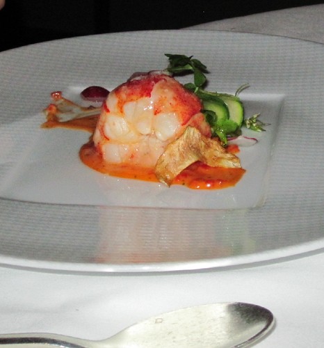 Seguem-se-lhe o tártaro de atum com pannacotta de ouriço-do-mar, o caranguejo de casca mole e a codorniz recheada com foie gras. De sabor quase intoleravelmente concentrado, e típico exemplo do prato «essência», a custarda de trufas brancas é servida numa casca de ovo (do vizinho Colombo?) e encimada por um «ragôut» de trufas pretas.