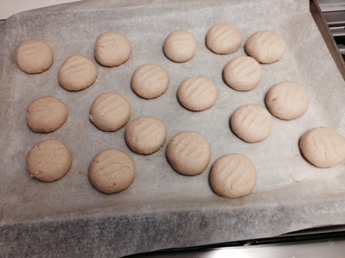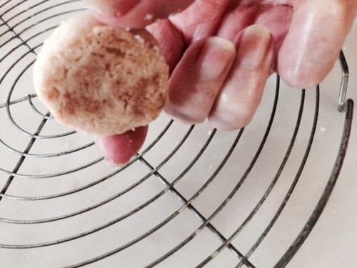 Com um garfo passado na farinha, achate as bolinhas. Leve-as ao forno durante 10 a 15 minutos. estão prontas quando a parte de baixo tiver ganho cor, mas as areias ainda estiverem esbranquiçadas ( a ideia é ficarem... cor de areia).