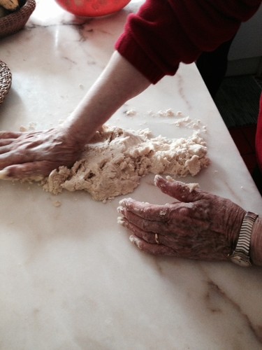Tudo começou com uma gordura alva como a neve, uma dádiva do porco de raça alentejana. Mais precisamente do véu que lhe segura os intestinos e que recebe os nomes de rissol, entretinho ou redenho. É daqui que se fazem os torresmos de rissol que, quando são bem secos, ficam estaladiços e deliciosos. Foi daqui que em casa se fez a banha que constituiu a gordura base das areias de Cascais. Foi o entretém de uma divertida tarde já desta semana de duas mulheres que gostam de cozinha: A Maria de Lourdes Modesto e eu. Depois foi deliciarmo-nos ao lanche, saboreando a gostosa sensação de uma massa areada que se derrete na boca e contrasta com a areia de açúcar pilé. Aqui ficam as fotos, a receita e as técnicas que a Maria de Lourdes me passou e que partilho convosco.